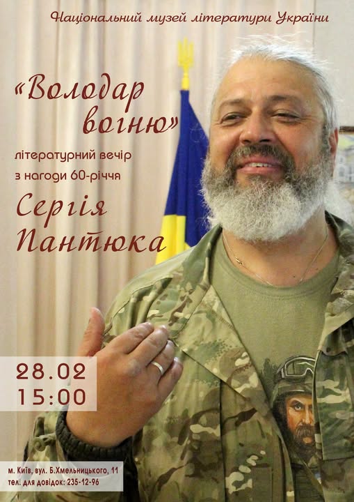28 лютого о 15:00 у Національному музеї літератури України відбудеться літературний вечір «Володар вогню» з нагоди 60-річчя Сергія Пантюка.