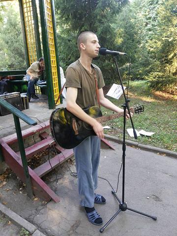 А потім гітару взяв один із глядачів Олексій Джура, і заспівав для своїх друзів те, що вони ще нещодавно співали разом під час перерв між боями на Сході.