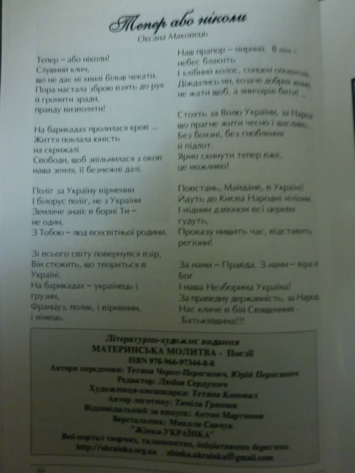 Окрім інформації про збірку, в журналі розміщено й поезії Наталії Крісман, Галинки Верховинки та Оксани Маковець.
