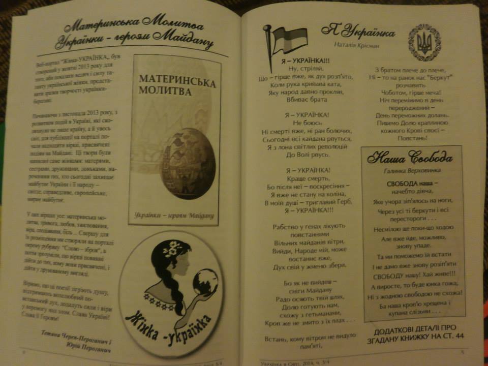 Хто ж з нас не любить отримувати добрі вісті?! Ми їх теж любимо. Більше того, часто отримуємо, завдяки вам, наші друзі і шанувальники порталу «Жінка-УКРАЇНКА». Ось і цей тиждень почався гарно. Юрію Багрянцев (тато письменниць Анни Багряної і Олени Багрянцевої), презентував нам примірник журналу «Українка в світі» - пресовий орган СФУЖО (Світової Федерації Українських Жіночих Організацій) №3-4 і несподівано та неочікувано побачили там інформацію про нашу «Материнську молитву», яка побачила світ майже рік тому, але й нині актуальна і дуже нам дорога.