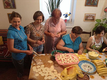 На фото: жінки за роботою; господиня дому, де ліплять вареники,